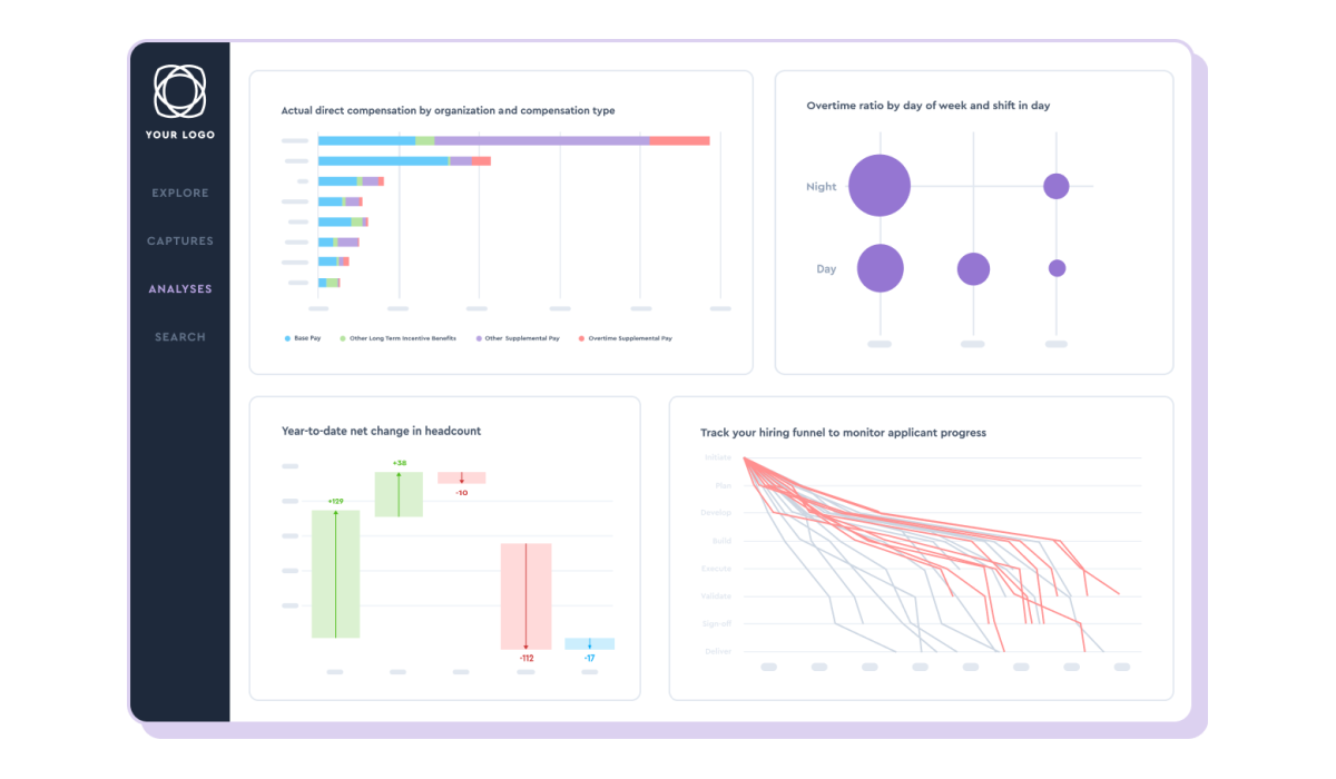 Using people analytics can swiftly address workforce questions such as budgeted pay vs. actual pay year-over-year in seconds. This level of insight can save business owners valuable time and resources.Â