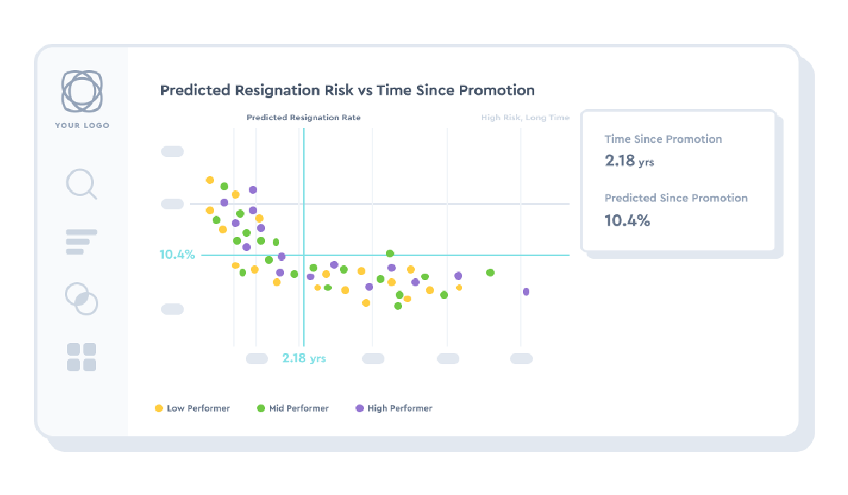 People analytics shows you which employees are at risk of leaving based on various factors such as engagement levels, performance trends, and demographic data. By detecting these flight risks early, you can intervene with targeted retention efforts and reduce your turnover rates.