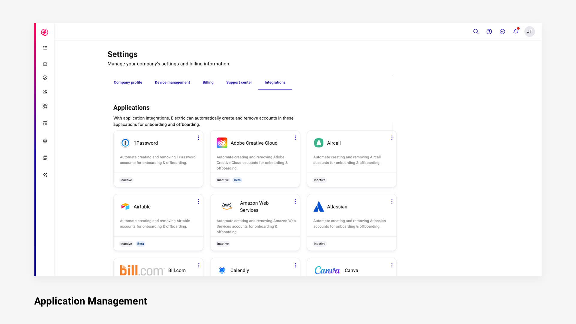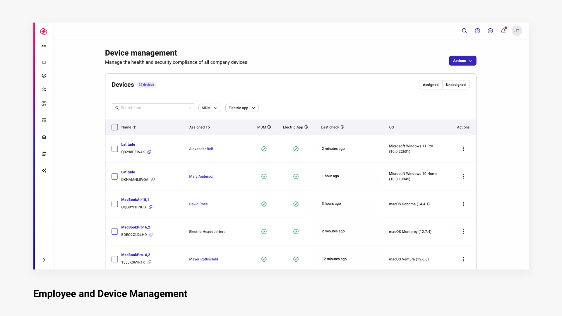 Electric AI streamlines IT by offering a single platform to manage devices, software access, and IT security. With Electric, IT onboarding and offboarding becomes simple: purchase and track hardware, grant or revoke application access, secure devices, and stay organized as your team grows.