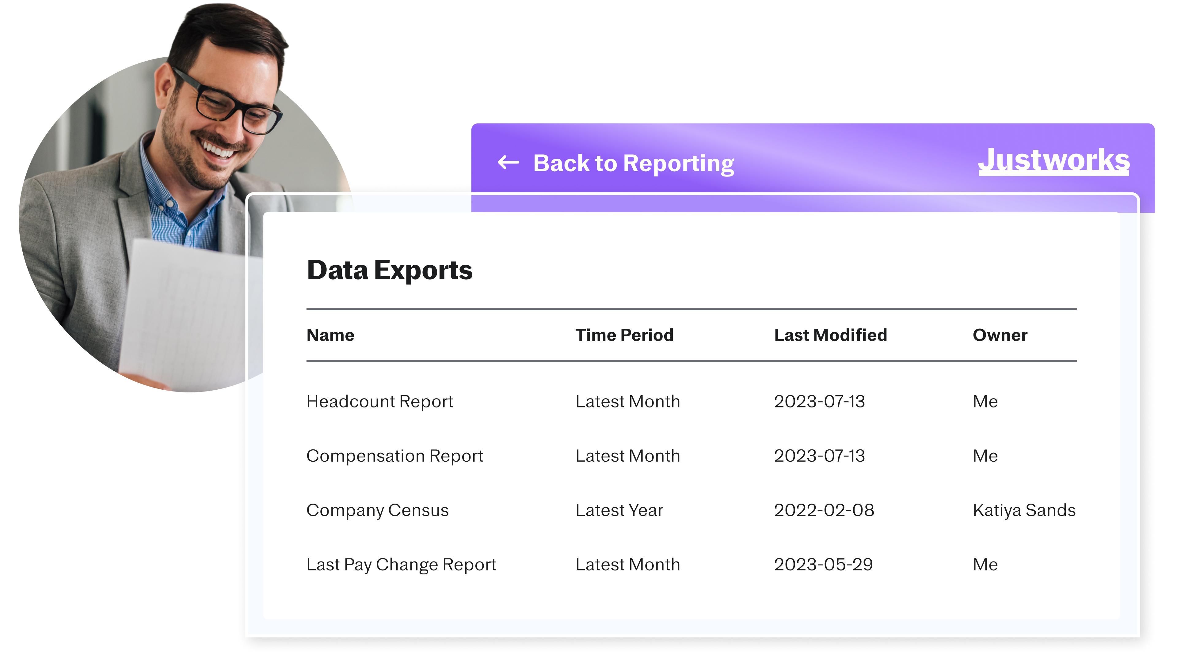 Easily manage and explore workforce data from one unified hub seamlessly integrated within Justworks PEO.