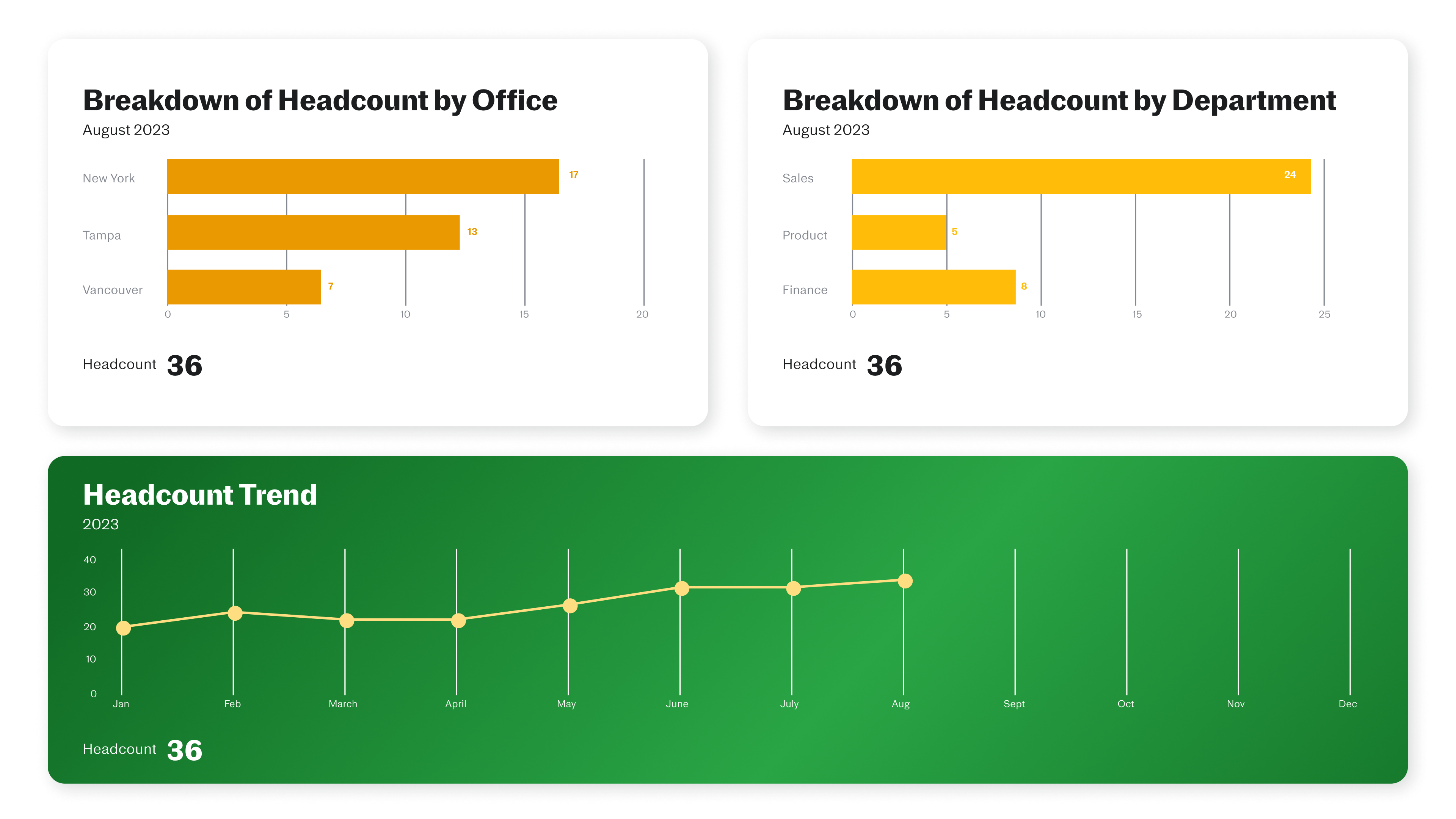 Discover trends that can help you stay on top of team performance and business growth with workforce data that makes it easier to track against your goals.Â